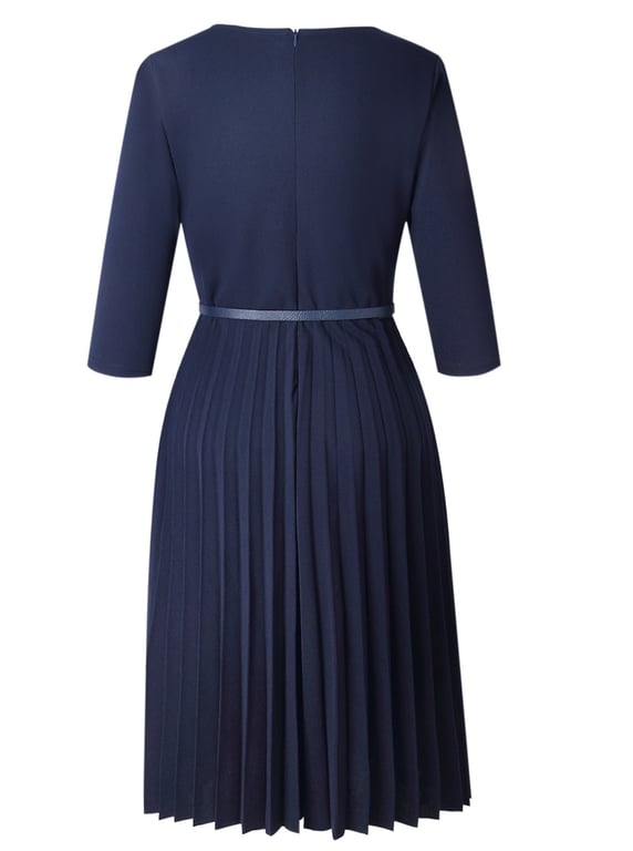 Solid Colour Dress with Pleated Skirt