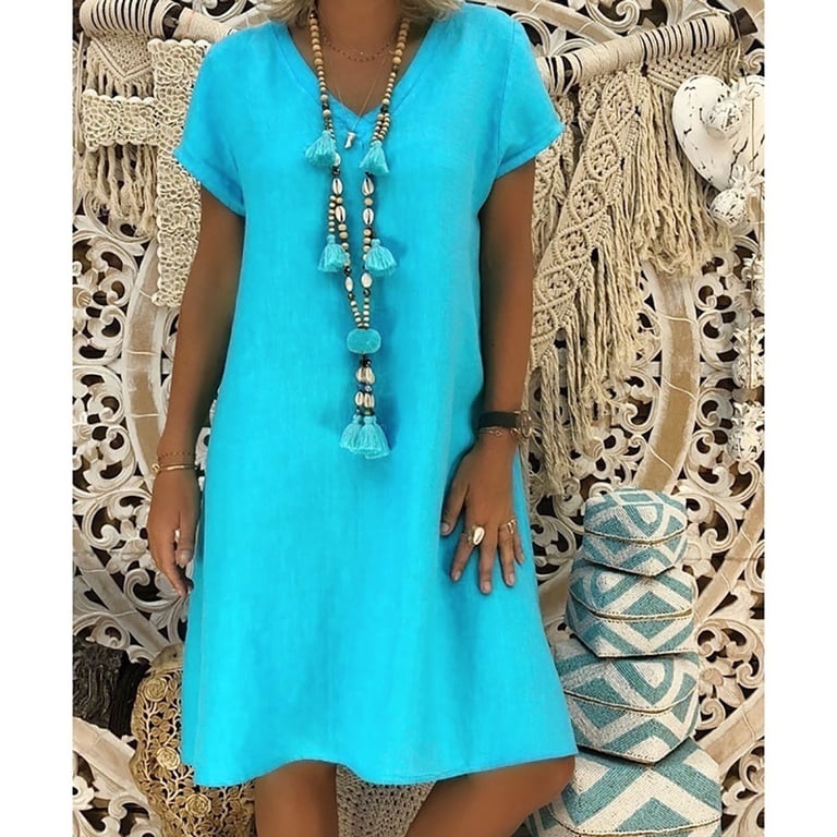 Comfortable women's dress with short sleeves.