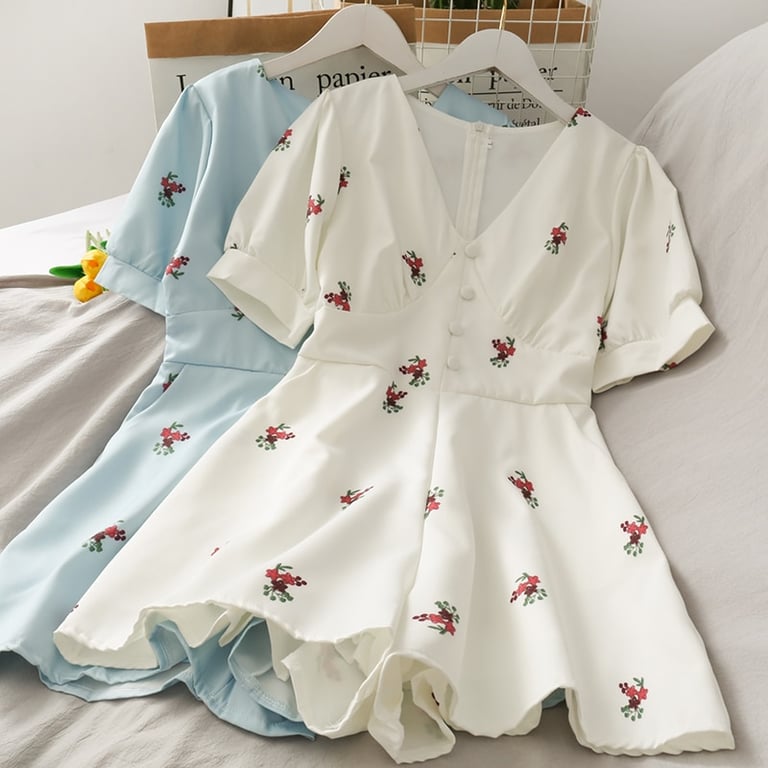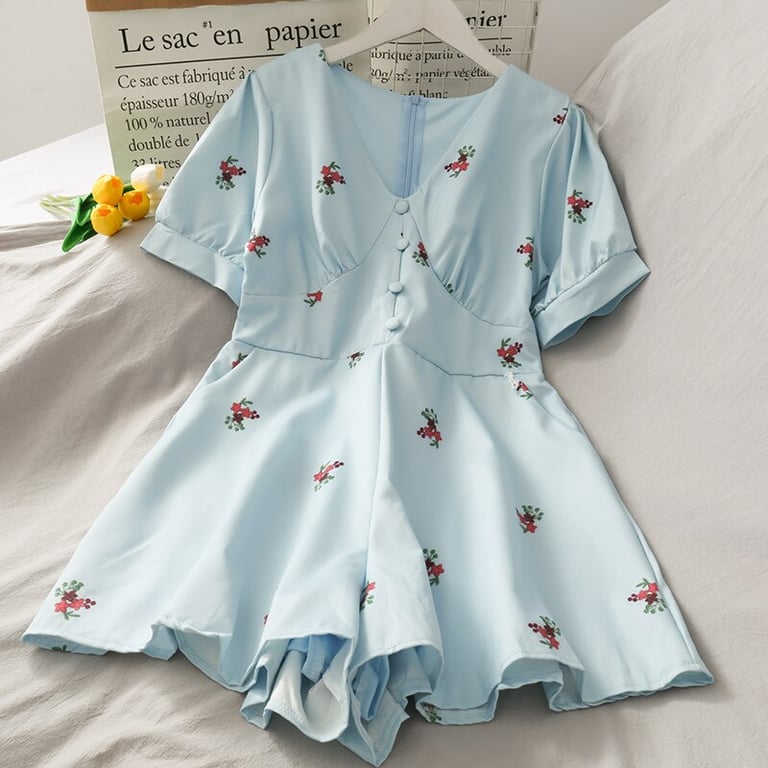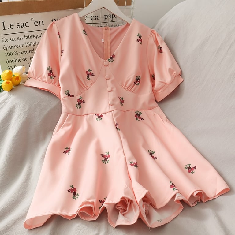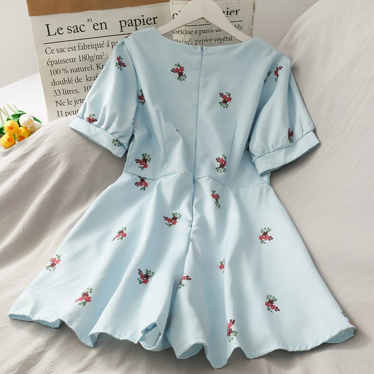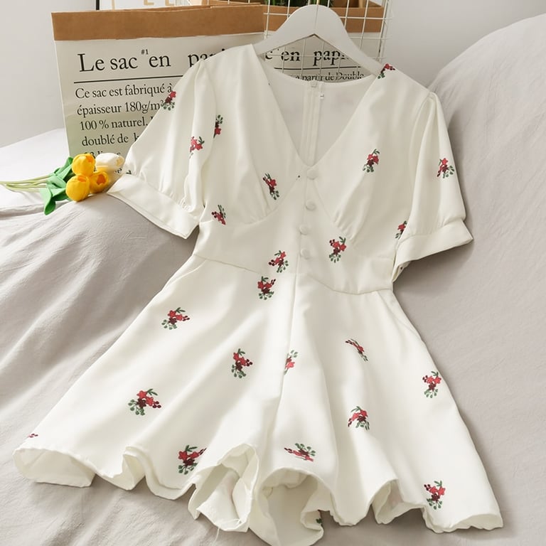 • Tags: Women's dress, summer dress, comfortable dress, short dress, for parties, by the sea, for holidays, with short sleeves, printed, with flowers, with patterns, with buttons, retro dress