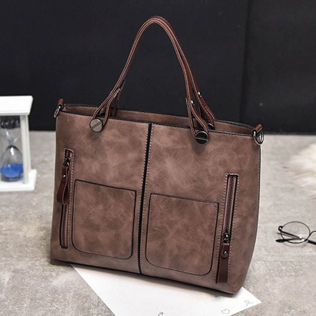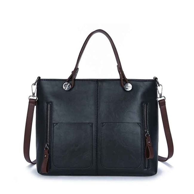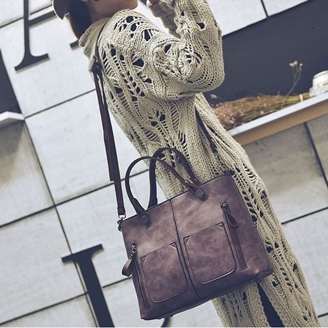 The spacious women's handbag features a detachable crossbody strap with adjustable length.