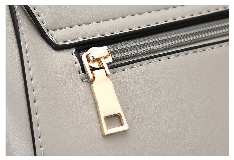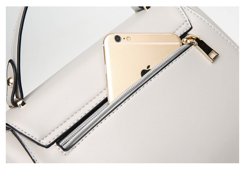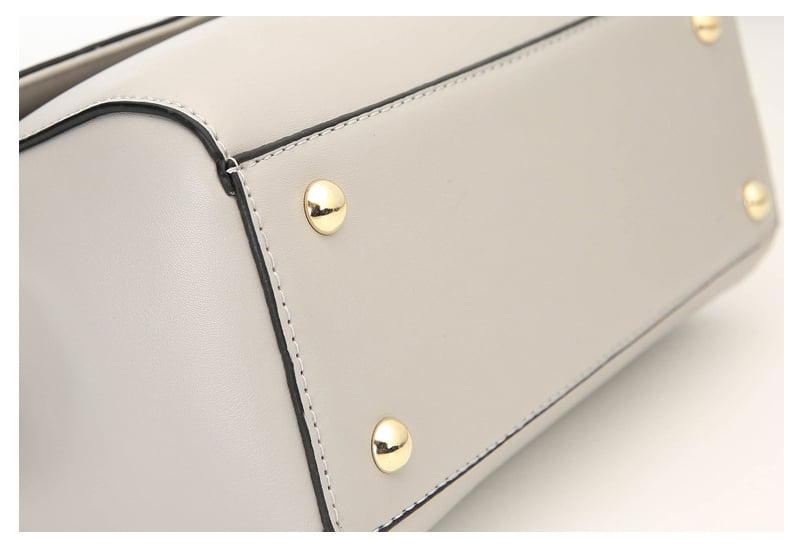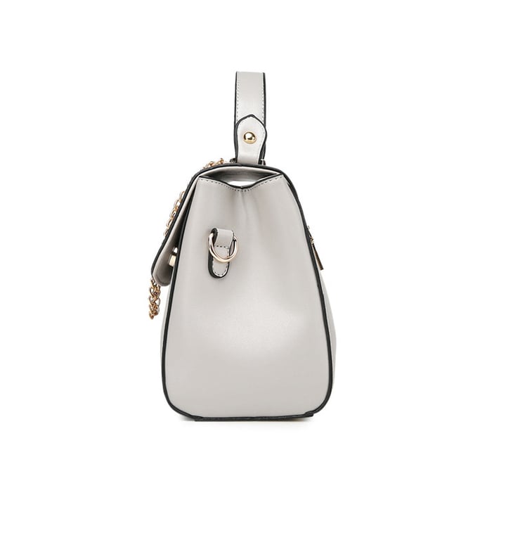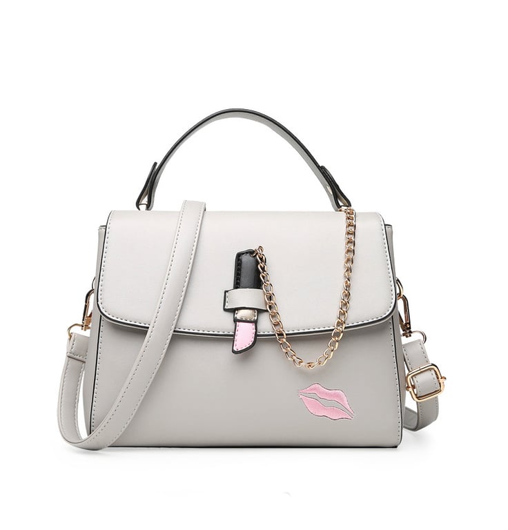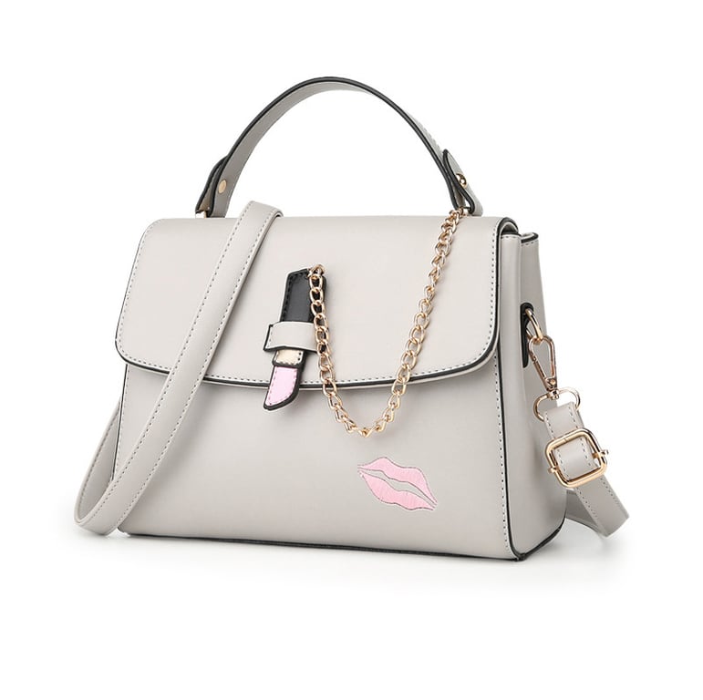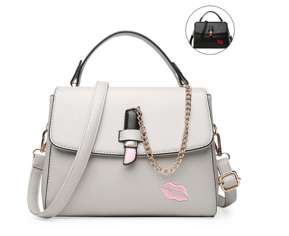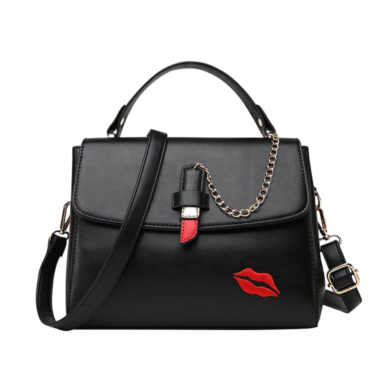The KISS ladies' handbag is charming with its elegant cut and the use of slightly glossy faux leather that convincingly imitates real leather. The handbag is very spacious inside. The shape of the handbag is sturdy, thanks to the reinforced bottom, which is also equipped with protective studs. The handbag comes with an adjustable shoulder strap. The metal accessories used on the handbag are gold in colour with a metallic sheen.