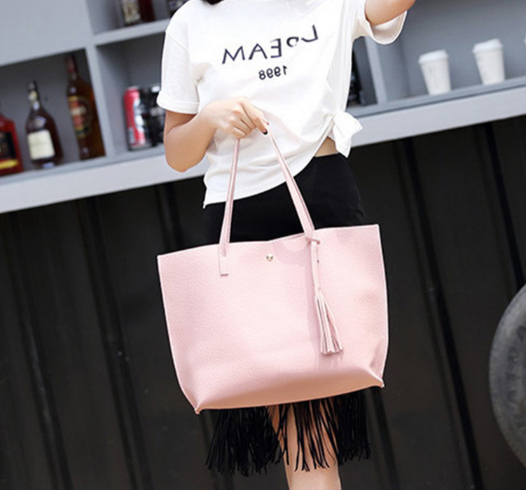 Large women's faux leather handbag with dimensions: 36 x 11 x 30 cm.