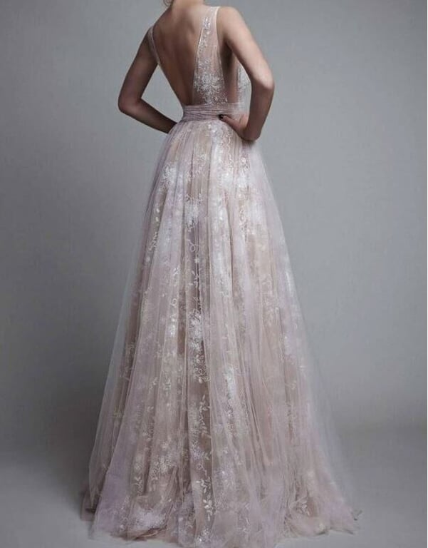 Sparkling ball gown beautiful sexy evening dress with lace neckline