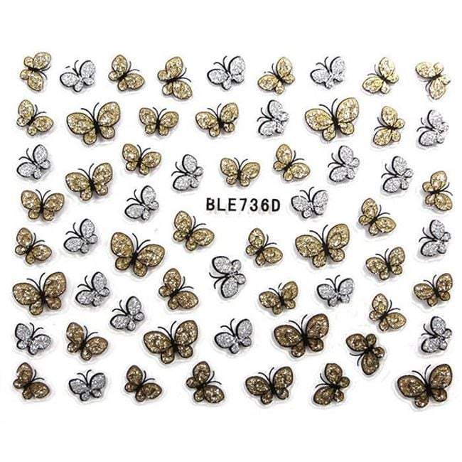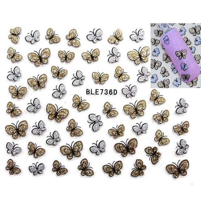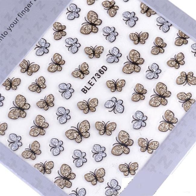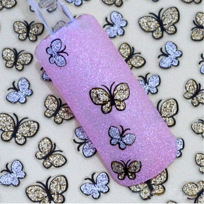Do you dream of perfect nails? With these stickers, you can achieve that. The stickers are shaped like butterflies adorned with glitter in gold and silver.