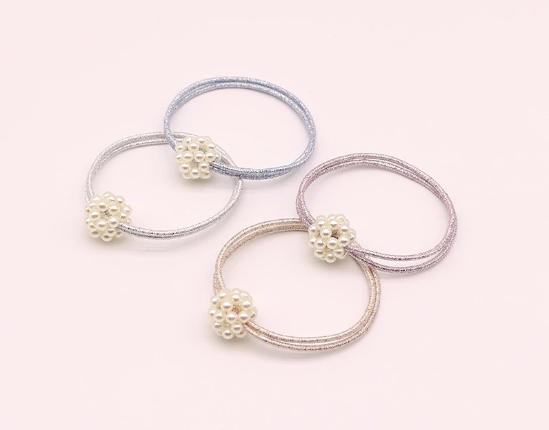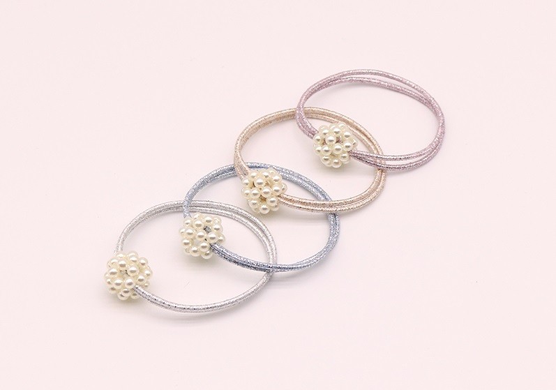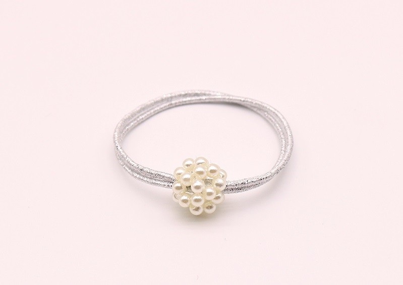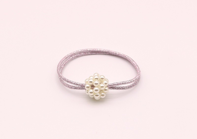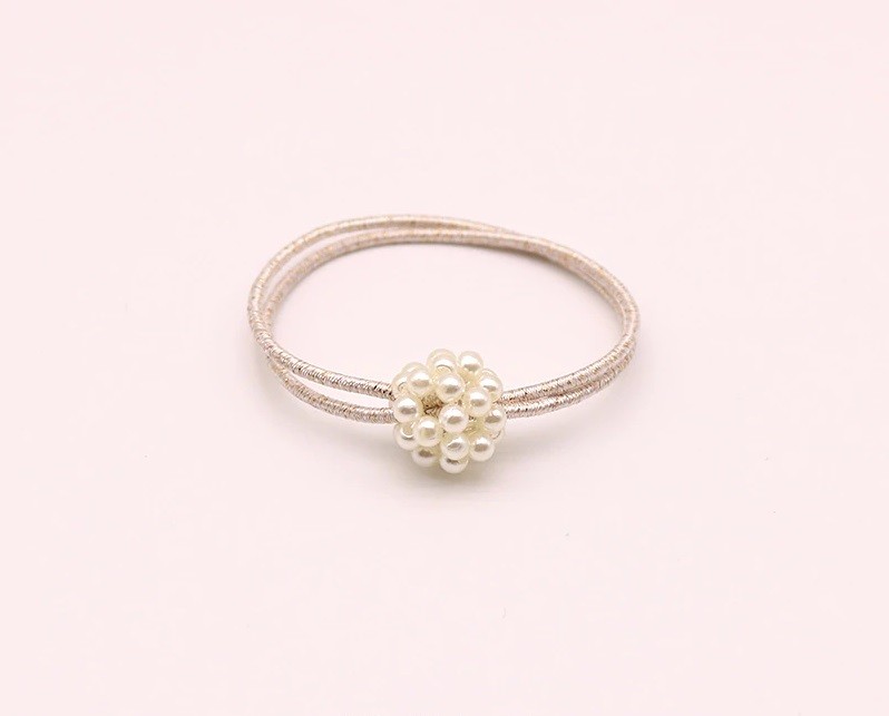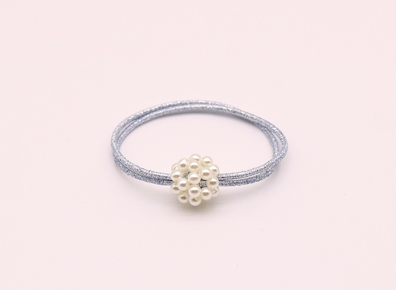 The hair tie sparkles mainly in direct light, and small pearls stand out in the middle.