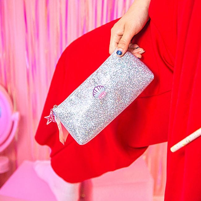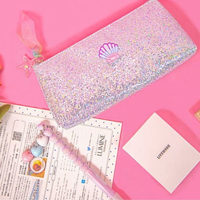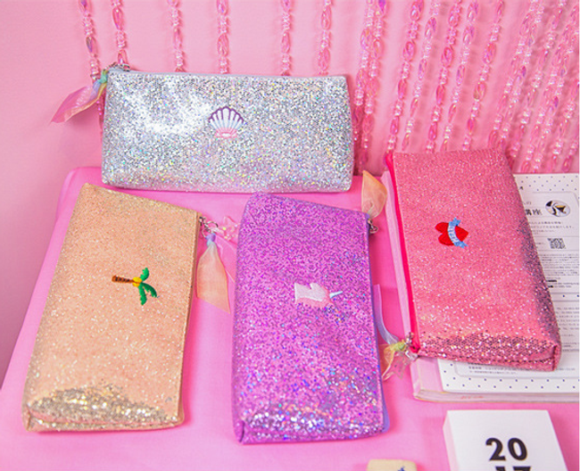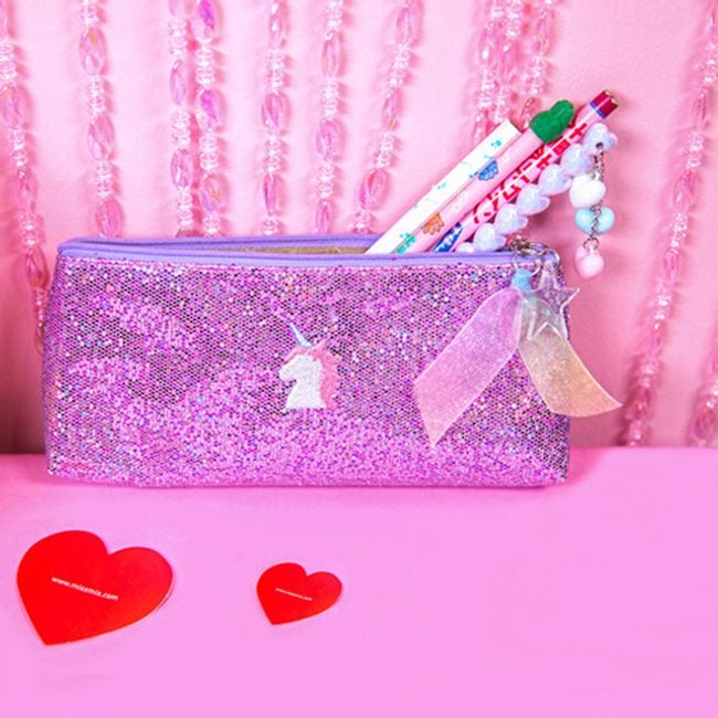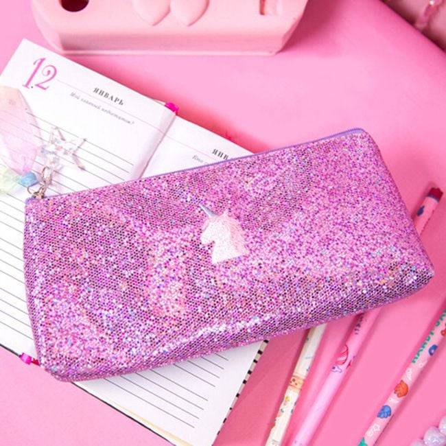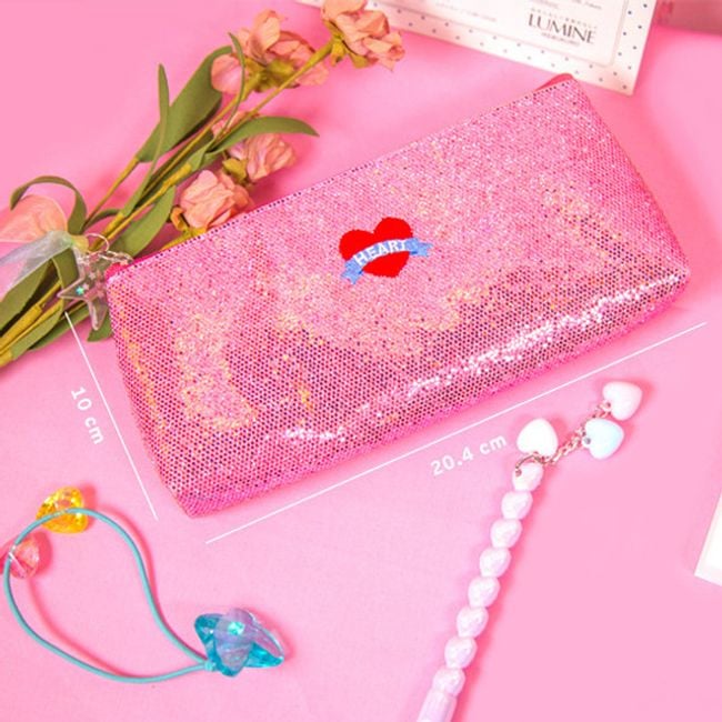 Cute pencil case with sequins can also be used as a cosmetic pouch or a medicine case.
