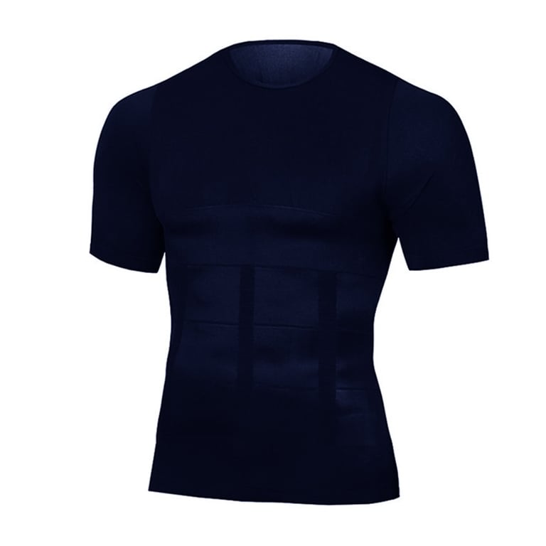 • Slimming men's short-sleeve t-shirt made from elastic cotton with three woven bands.