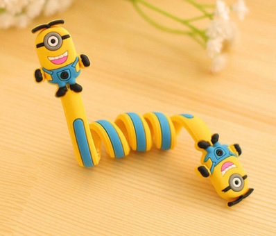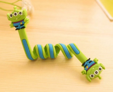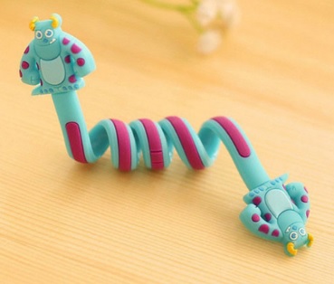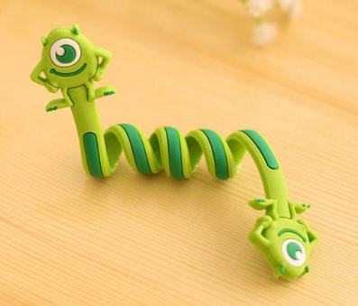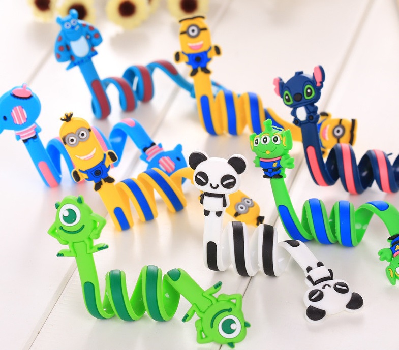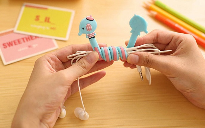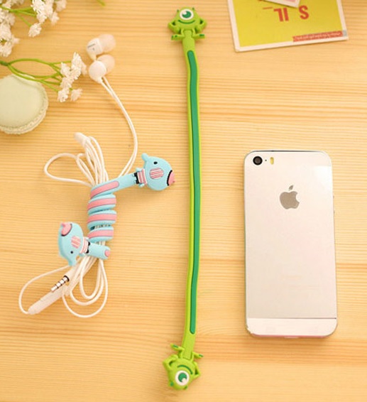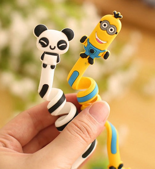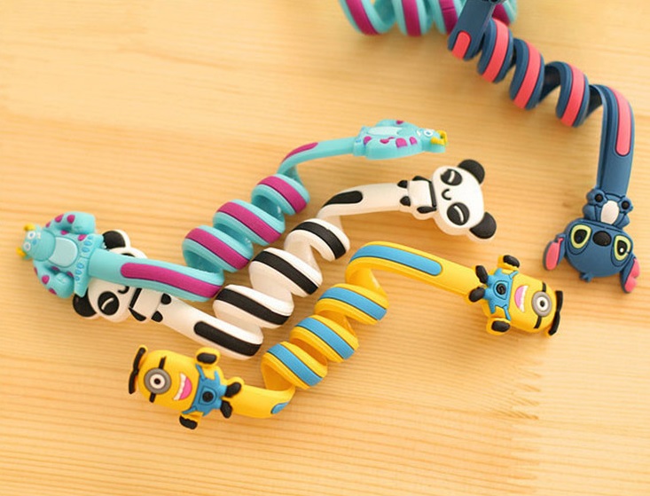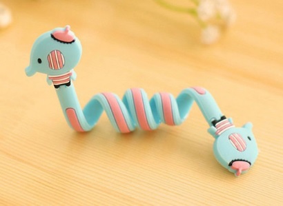 Funny spiral cable clips prevent tangled messes.
