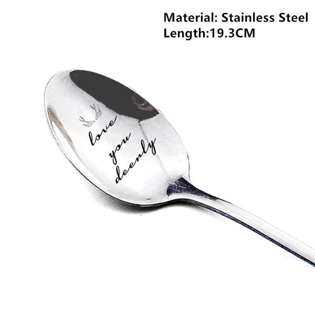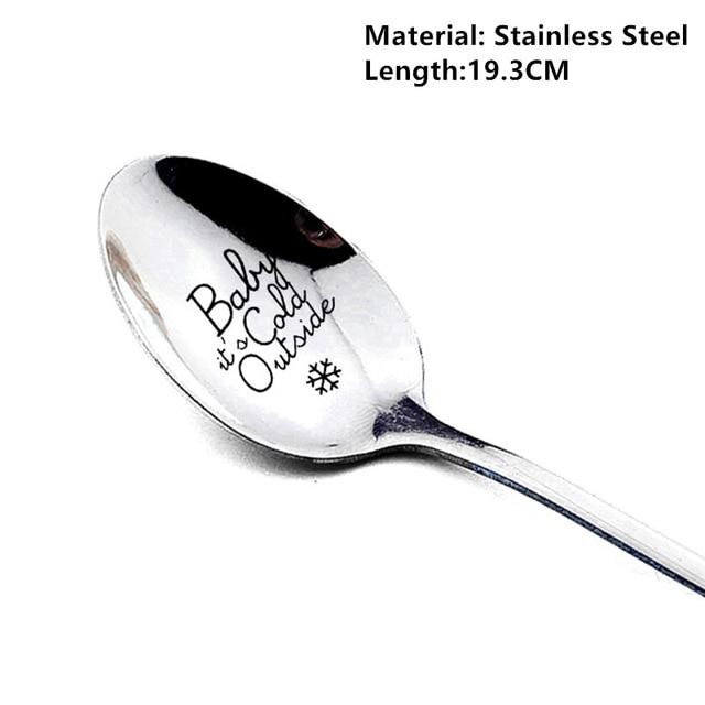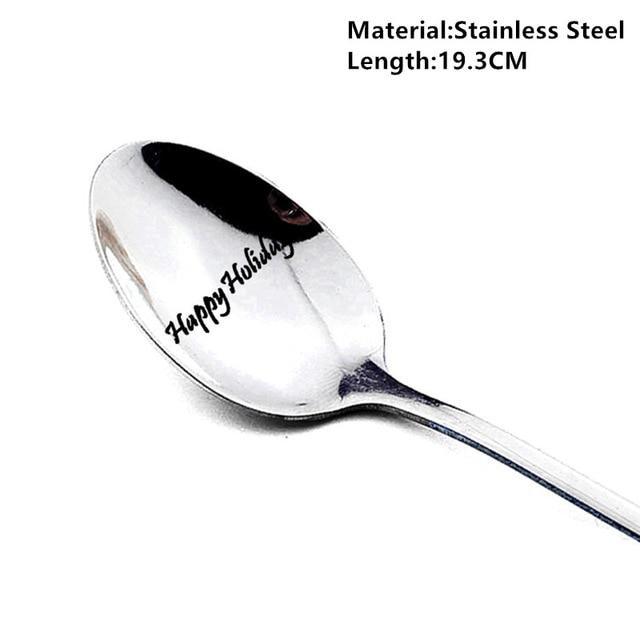Spoon with a Christmas inscription in various styles.