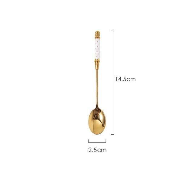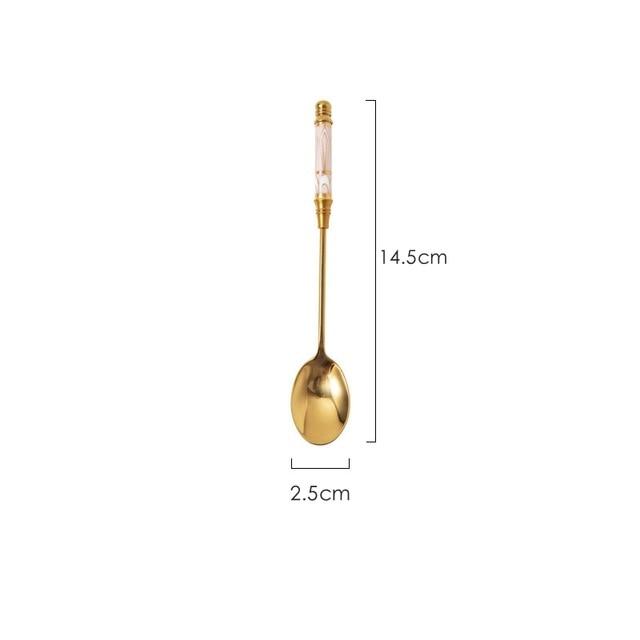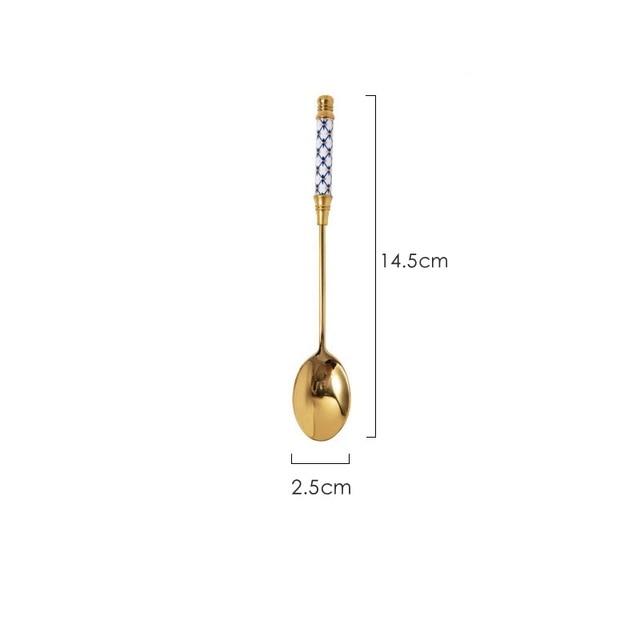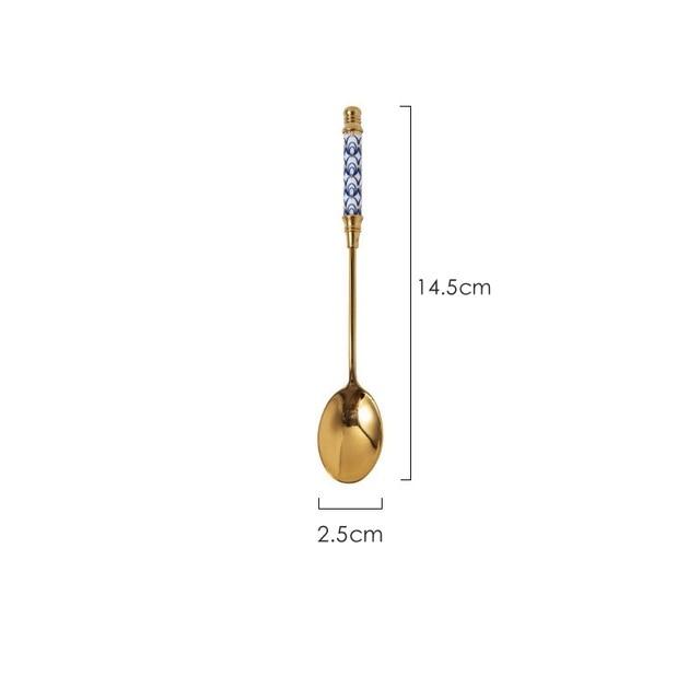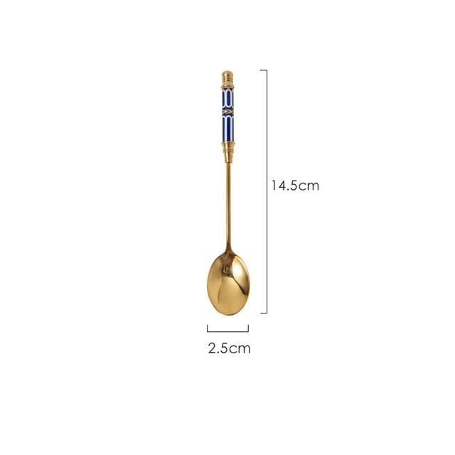 Spoon with a multi-coloured pattern.