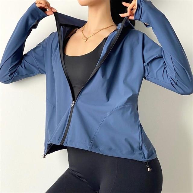 Women's sports nylon hoodie. Very comfortable, breathable, suitable for fitness sports or running.
