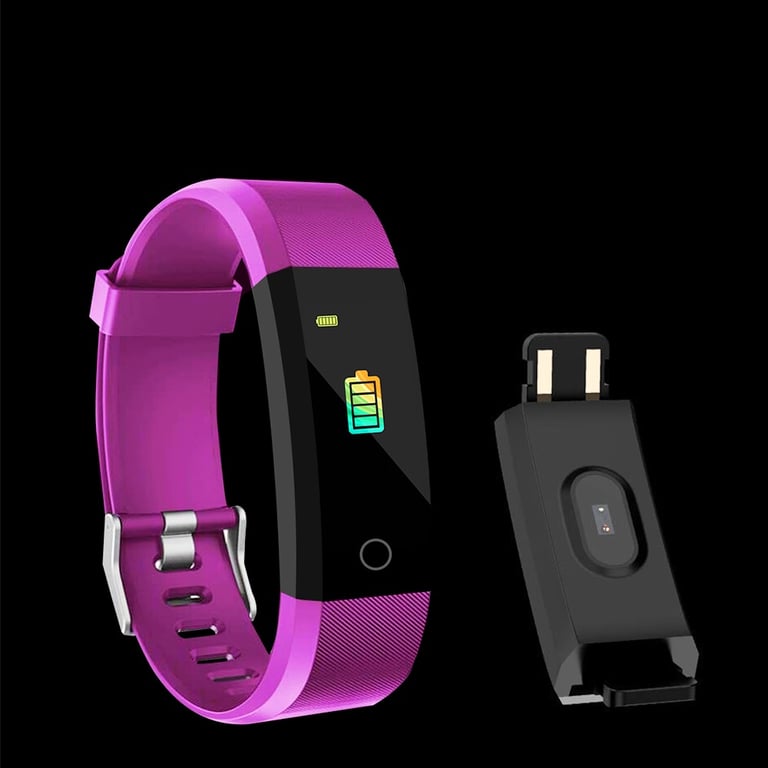 Charging: remove the watch from the silicone strap and connect the USB plug to a charging adapter or PC