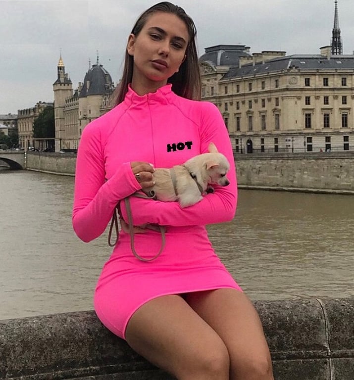 Mini dress with long sleeves and a zip neckline.