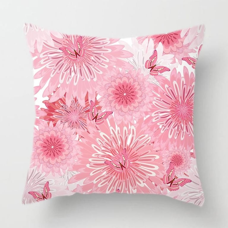 Spring Cushion Cover with Flowers - Pink