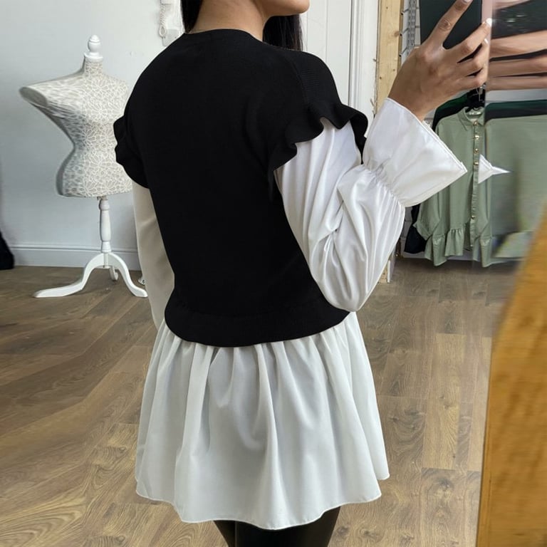Spring/autumn shirt dress with long sleeves and ruffles