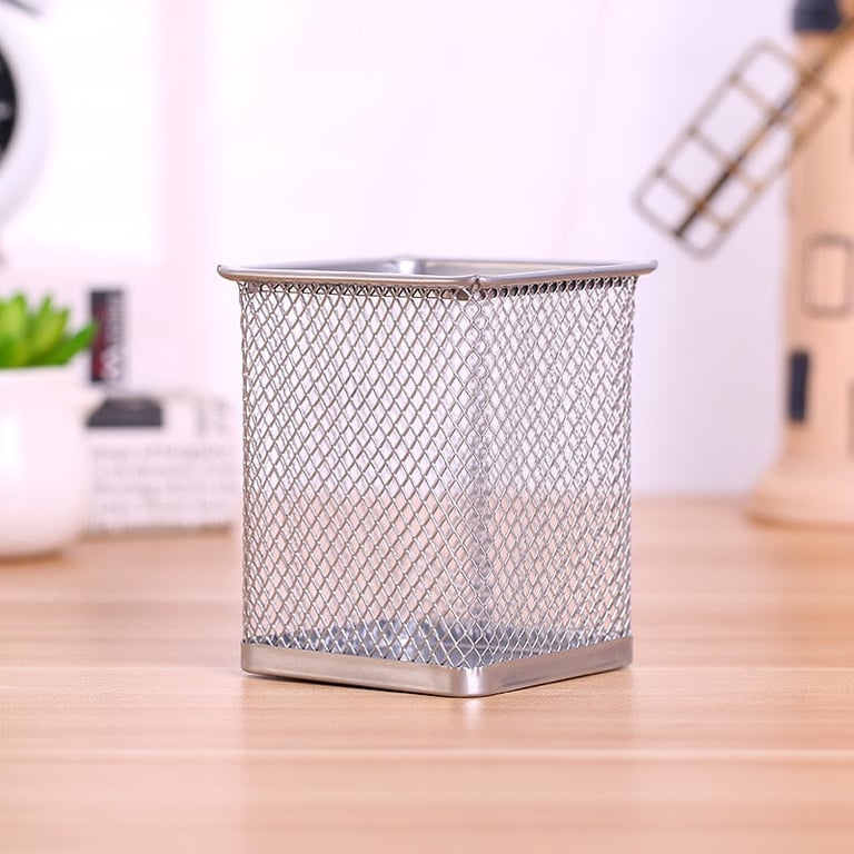 Square metal pencil holder.