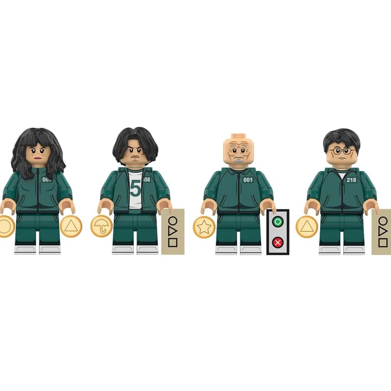 The figures include the main contestants, as well as the masked guards and the robotic doll. Thanks to compatibility with Lego-style building sets, it will expand any collection and the world of building.