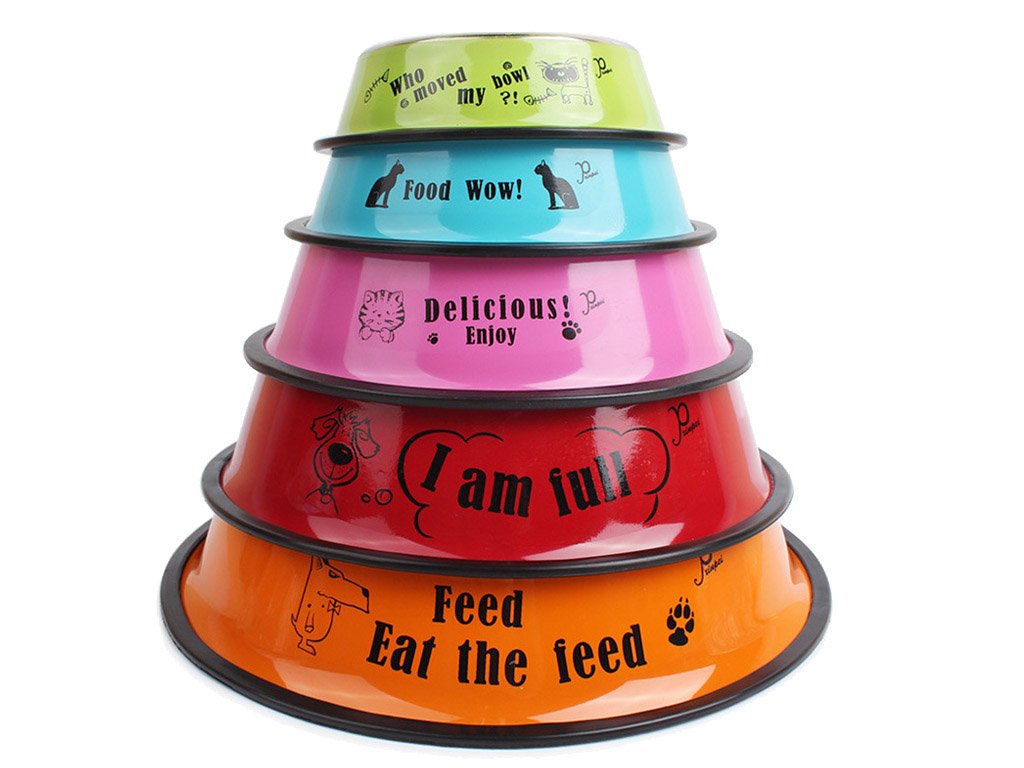 The stainless steel bowl is specially designed for dogs or cats and has a non-slip coating on the bottom – a rubber ring on the underside. The bowl comes in various colours and is available in five sizes.
