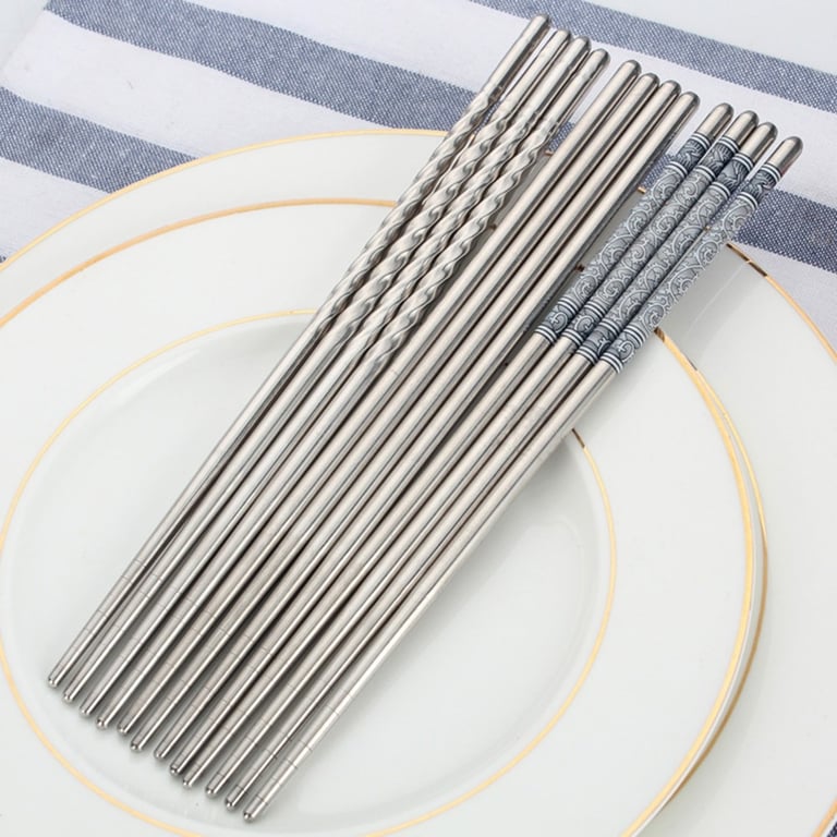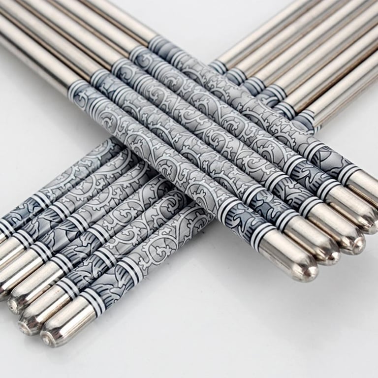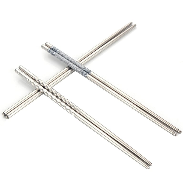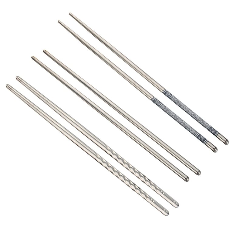 The package contains one pair each of shiny, ribbed, and floral chopsticks.