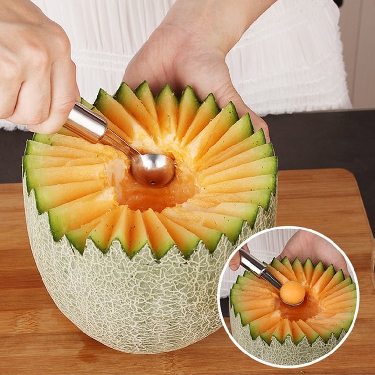 Package contents: 1 pc peeler, 1 pc serrated knife, 1 pc core remover, 1 pc decorative cutter, 1 pc melon scoop, 1 pc spoon