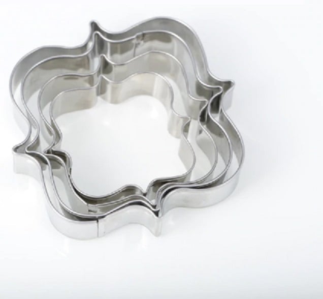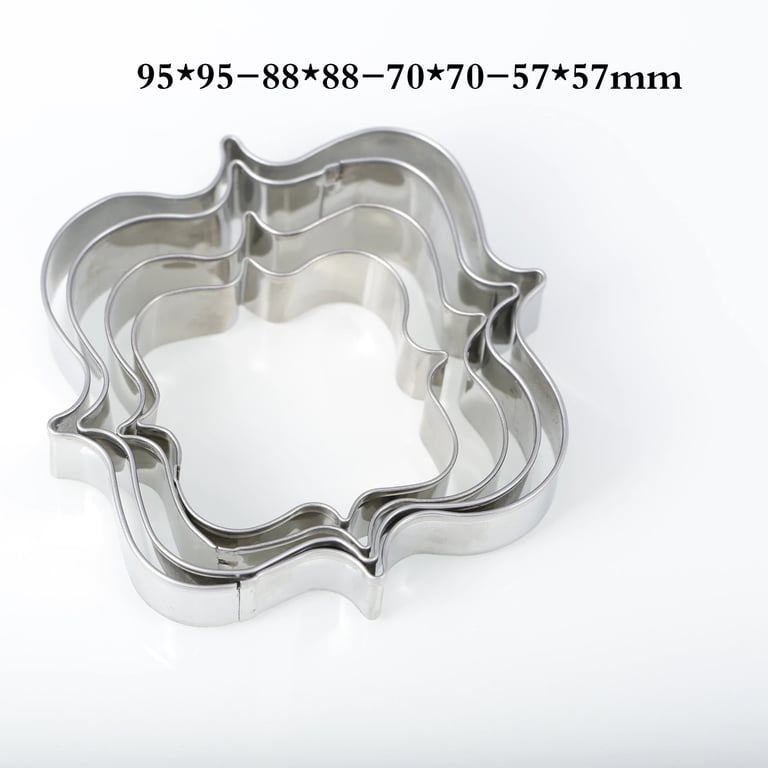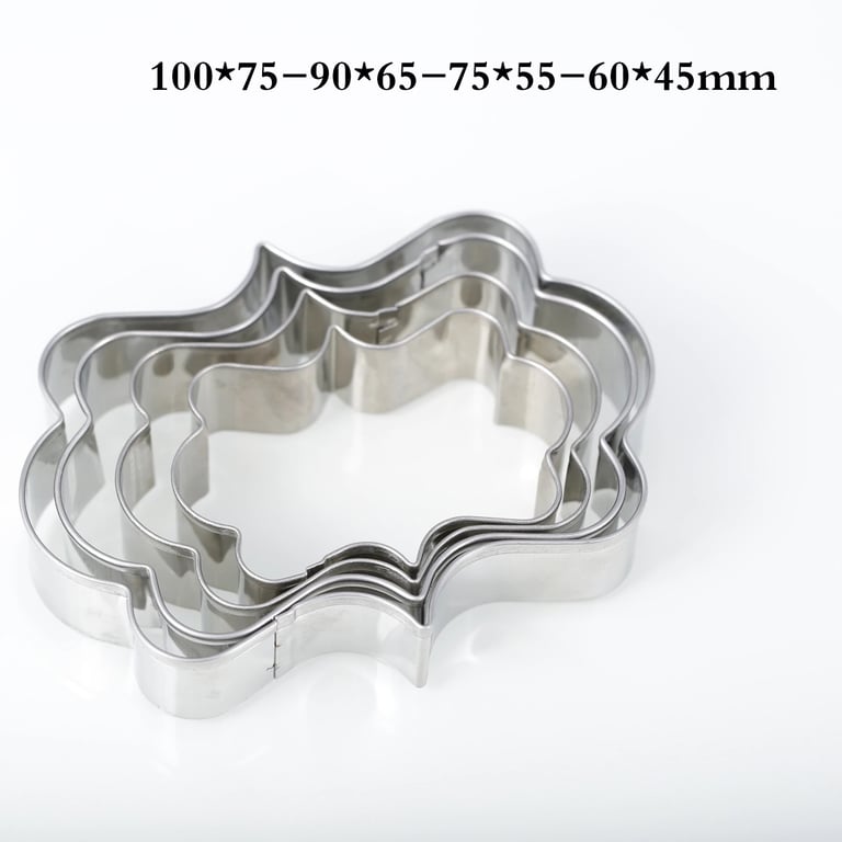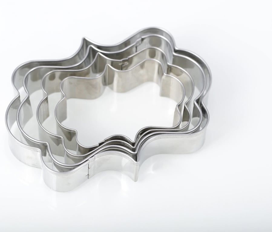 Set of 4 stainless steel cookie cutters. The cutters can be used for any type of dough, including cake fondant.