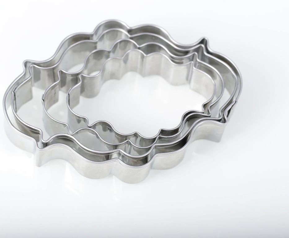 Set of 4 stainless steel cookie cutters. The cutters can be used for any type of dough, including cake fondant.