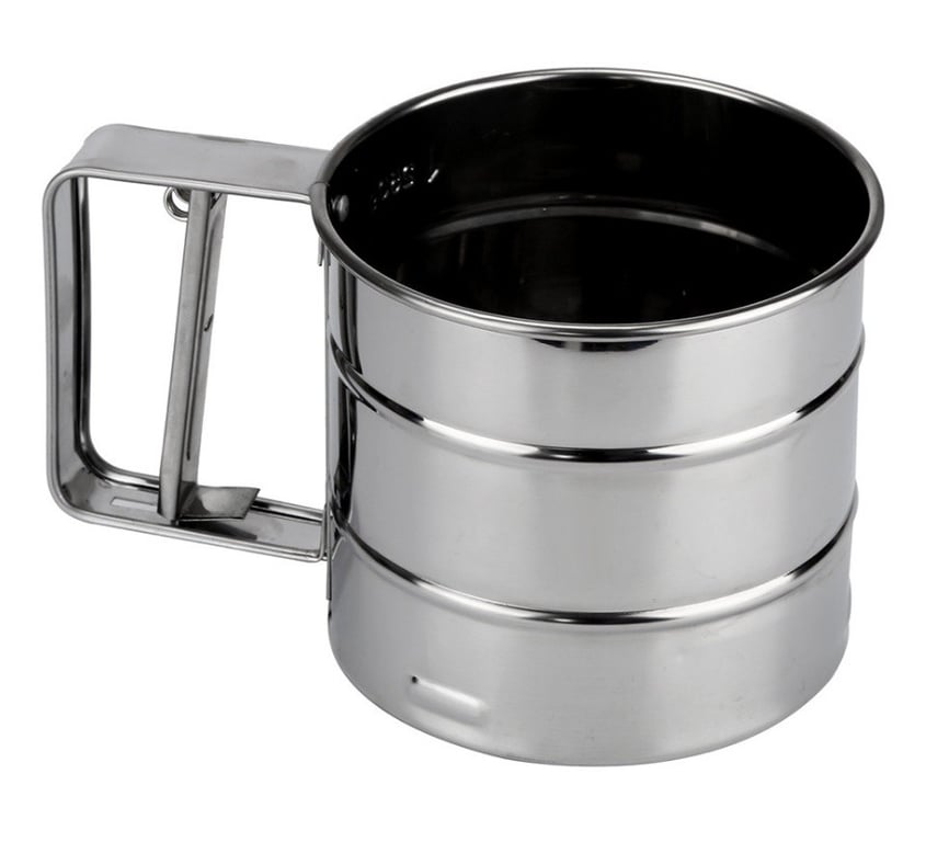 The flour sieve made of stainless steel is designed to create fluffy flour.