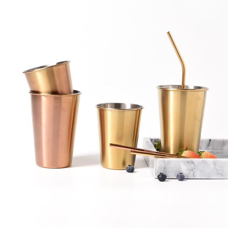 Stylish stainless steel mugs in beautiful colours. Every guest will appreciate these mugs.