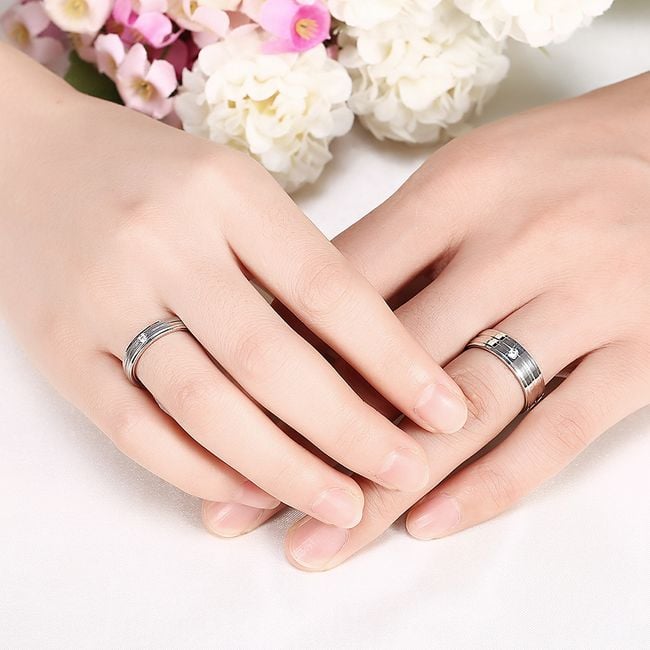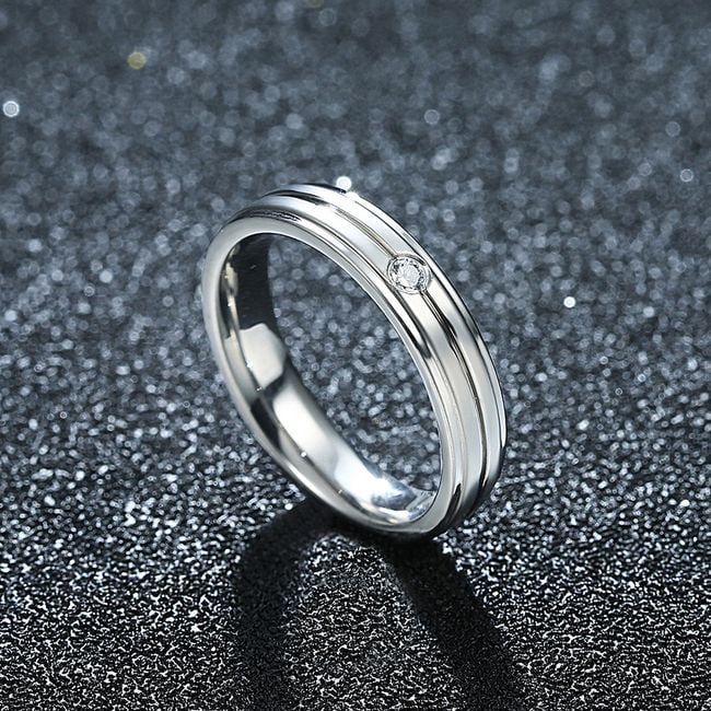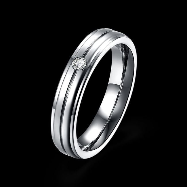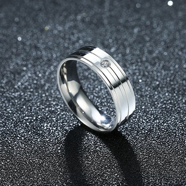 A classic stainless steel ring can also serve as an engagement ring thanks to its delicate design. The ring is adorned with a gentle zircon stone. It also makes a lovely birthday gift for a partner.