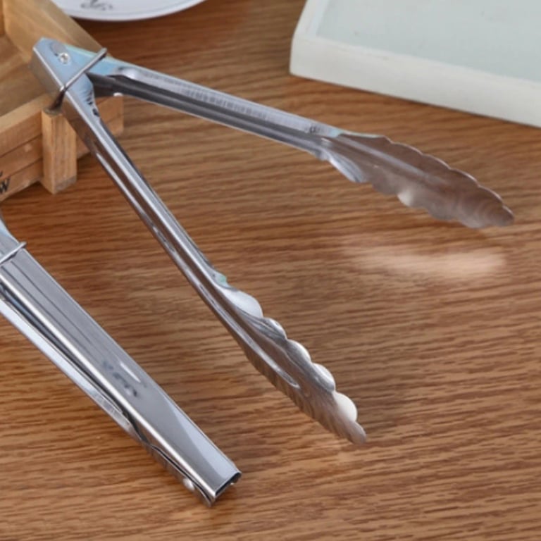Stainless steel tongs are a great helper in the kitchen.