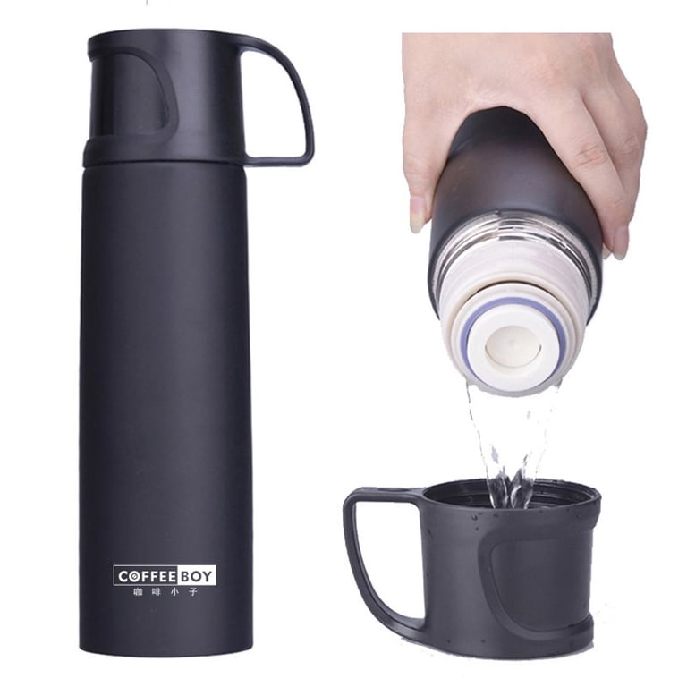 Stainless steel thermos with a safety cap. Practical lid in the form of a mug. Keeps the temperature of the liquid for 6 – 12 hours. Available in several colours.