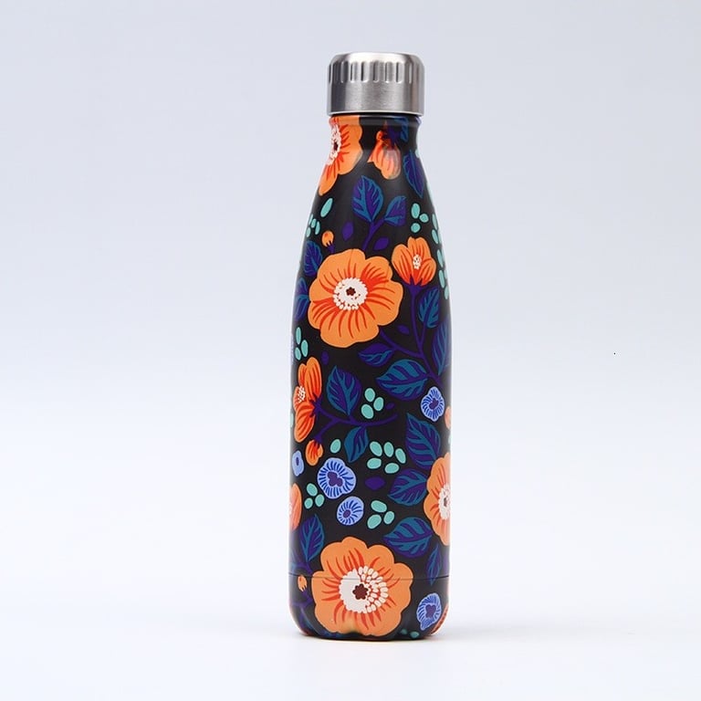 Stainless Steel Travel Bottle with Floral Design