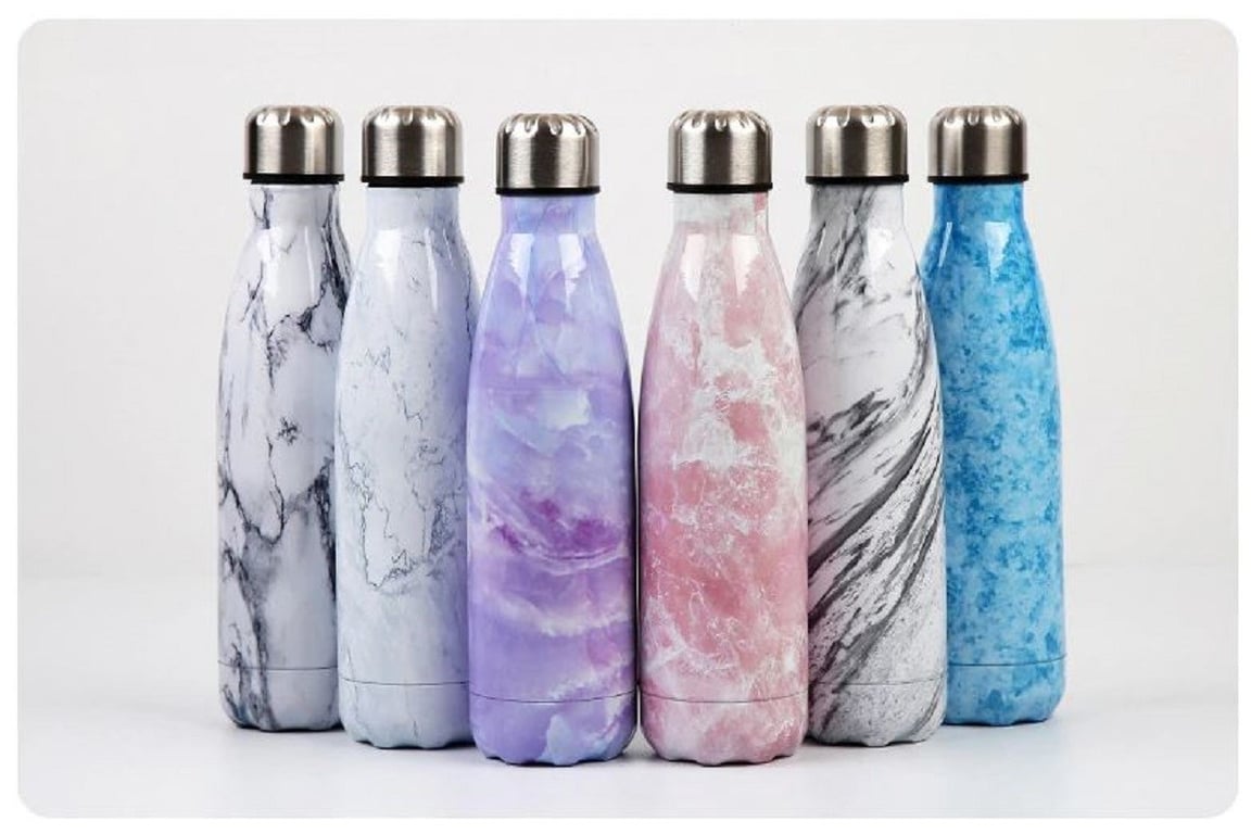Stainless Steel Travel Bottle with Marble Design