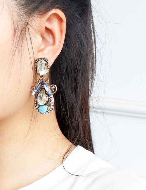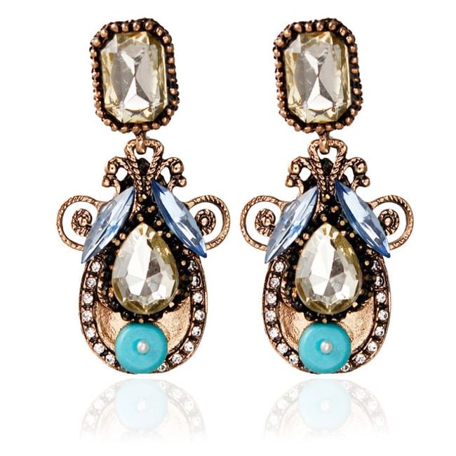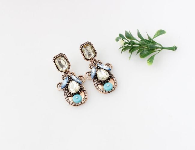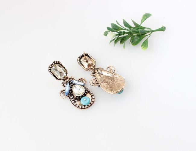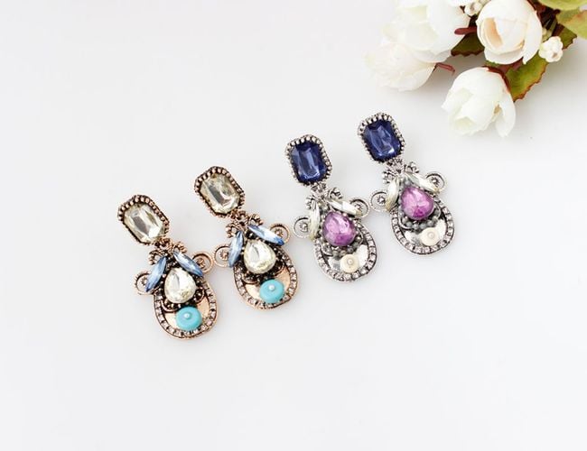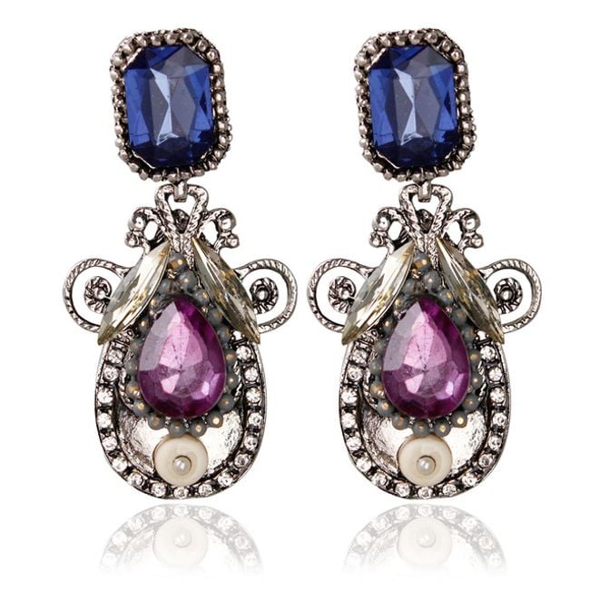 These drop earrings are adorned with striking stones. They are particularly suitable for balls with dresses. You can choose from two colour combinations.