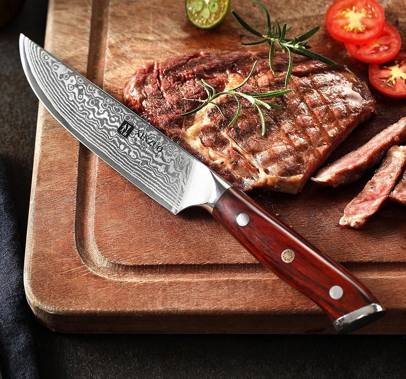 Steak knife made of Damascus steel