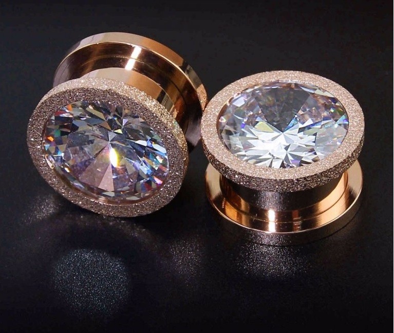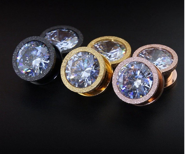 Creatively decorated steel plug available in three colours.