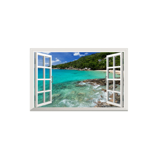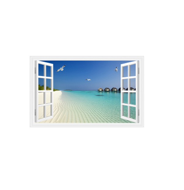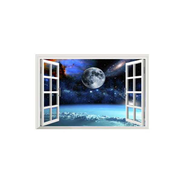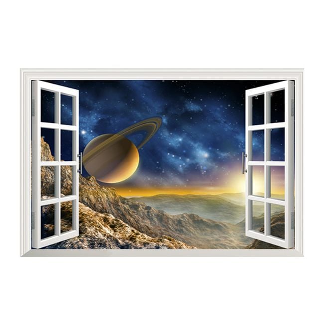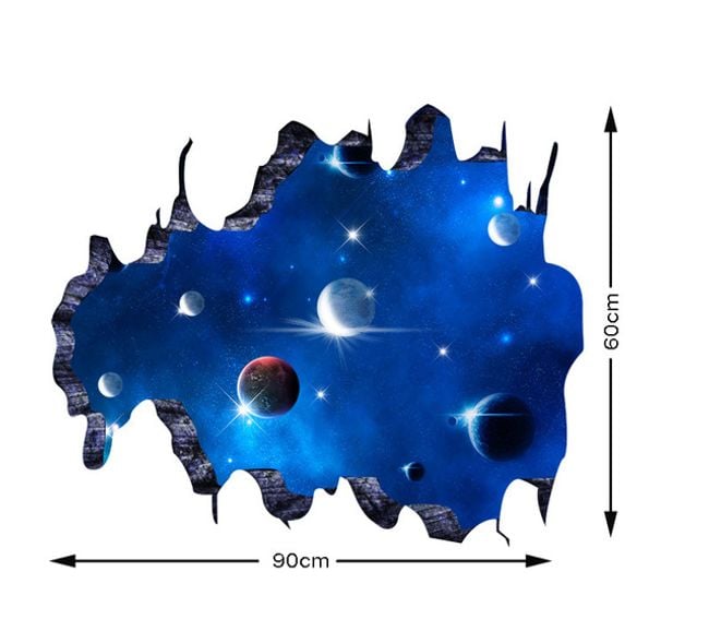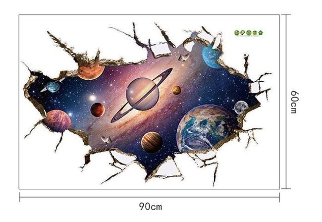 The sticker is very stylish and suitable for a child's room or any other room. It looks like a view from a window into space.