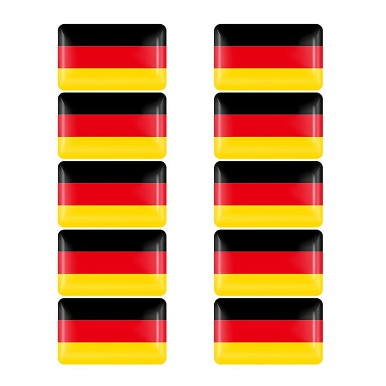 German flag for the car. High-quality design. Quick attachment. Dimensions 18 x 11 mm. The package contains 10 pieces.