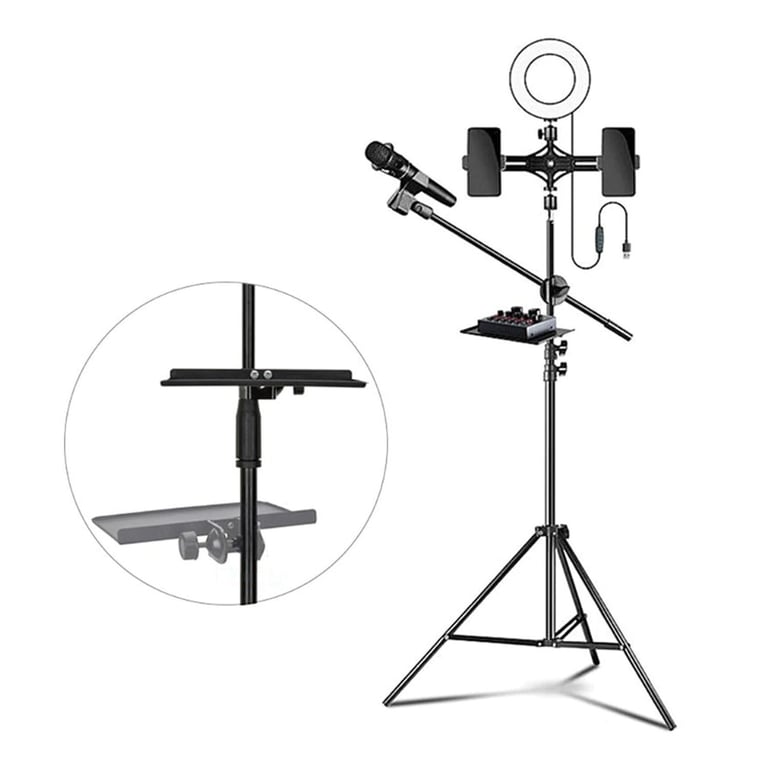 Storage shelf for music and microphone stands