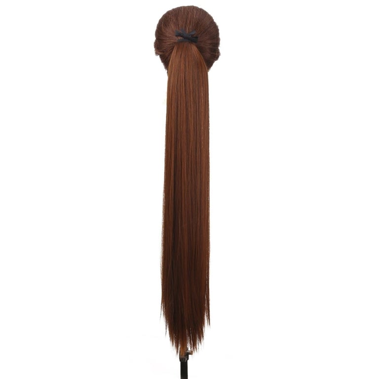 The clip-in extension is easily attached to your ponytail. It adds volume to your hair. High-quality synthetic fibres were used in its production. The extension is resistant to frizz. Secure and quick attachment using a clip and elastic band.