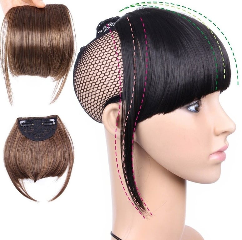 Clip-in straight fringe approximately 15 cm long. Can be trimmed to fit your face. You can also blow-dry, curl, or straighten it. High durability thanks to high-quality materials. Secure attachment with a clip.