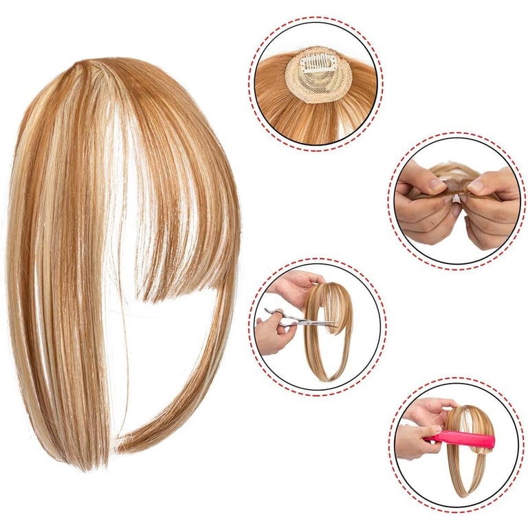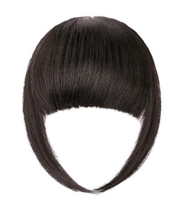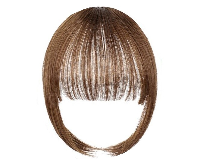 Clip-in straight fringe with side strands. Secure attachment using a clip. Can be trimmed to fit your face. You can curl or straighten it. Suitable for parties, work, and everyday wear.
