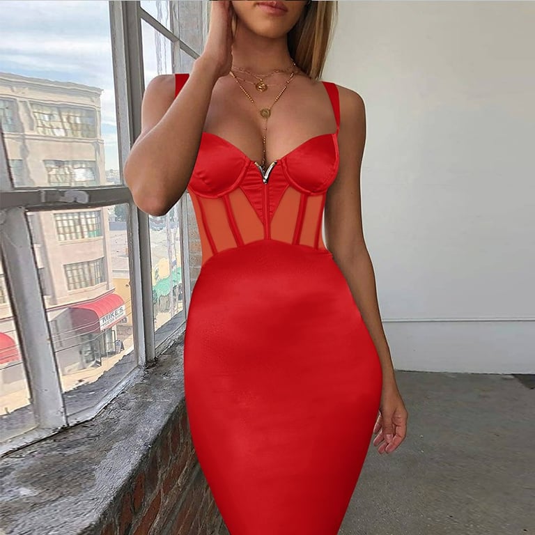 Strap Dress with a Deep Neckline