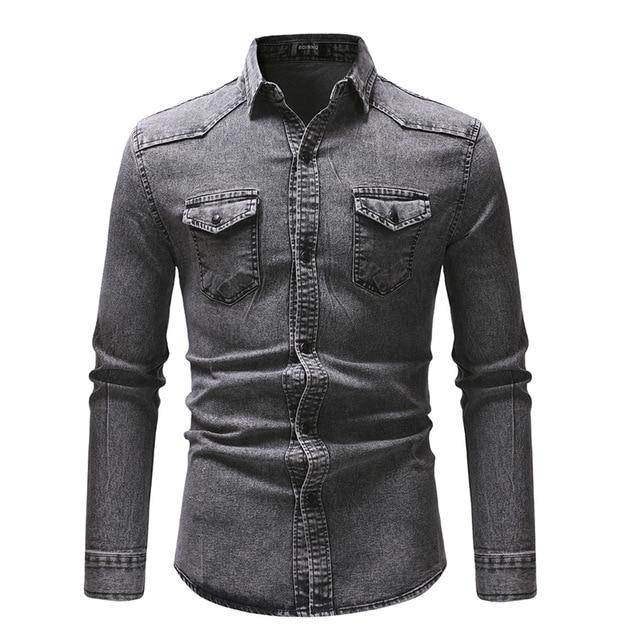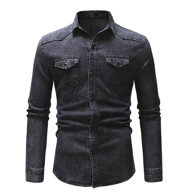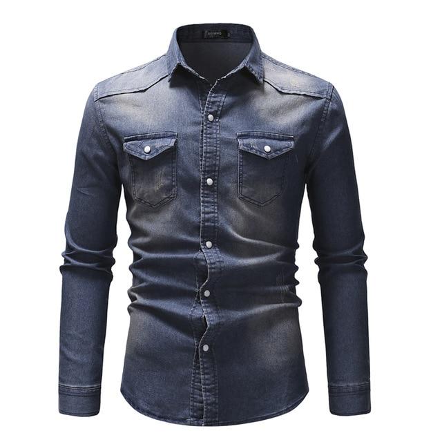 Men's denim expandable shirt with long sleeves. Available in several colours.