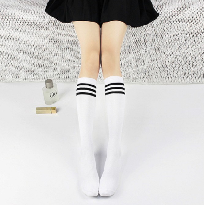 The knee-high socks are stylish and comfortable.