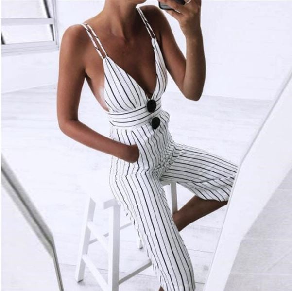 Striped long women's jumpsuit