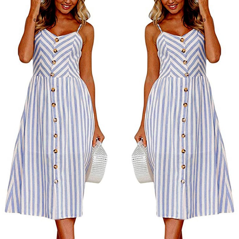 Striped perfect interesting creative women's summer dress with buttons
