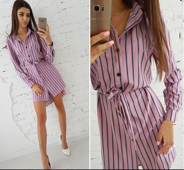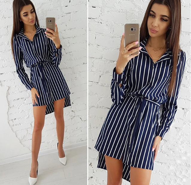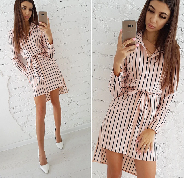 Striped shirt-style fine elegant women's summer dress