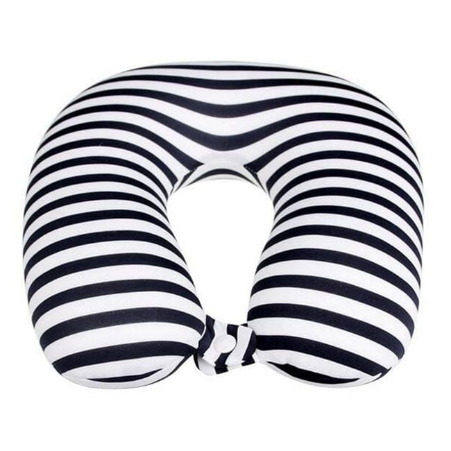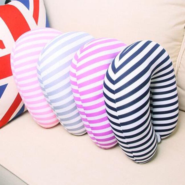 The striped cushion will be great for sleeping and resting while travelling!