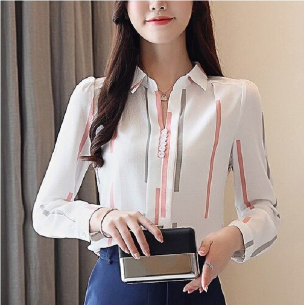 A classic long-sleeved blouse with a simple print.
